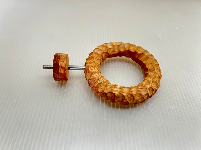 木の繊維が交差するように貼り合わせた一体化形成。 丈夫で破損しにくい設計のデザインドーナツパーチはケージのアクセントやキャリーにもご使用いただけます。 【適応鳥種】 小型〜中型さん 【本体サイズ】 W135mm×D100mm(外周Φ100mm×パーチΦ18mm) 【素材】 北米産オーク、ステンレスボルト、ステンレスチューブ 【納期】 決済後3日以内に発送 【仕様】 ・天然木無垢材を使用しておりますので色ムラ、傷、欠け、割れ、節、折れ、曲がり等があります。 ・材料は乾燥後洗浄、煮沸、動物病院でも使用されるソリューションウォーター(次亜塩素酸)にて消毒済みです。 ・止まり木は自然の風合いを活かした無塗装仕上げ、愛鳥さんが樹皮をかじっても安全です。 ・愛鳥さんの個体差により適応鳥種から外れる場合もございます。ご購入前にご相談ください。 ・仕様は予告なく変更になる場合があります。 【ご使用前に】 お届けした止まり木には木肌保護のため国産天然素材由来の蜜蝋ワックスを薄く塗布してございます。鳥さんの口に入っても問題ございませんが、使用前に水で濡らし硬く絞った布等で軽く拭き取ってからご使用ください。 すぐに使わない止まり木は蜜蝋ワックスを拭き取らず保管いただくことをお勧めいたします。長期間の保存でも樹皮のひび割れや乾燥劣化を防ぐ効果があります。 【お手入れ】 ・軽い汚れは水で濡らして固く絞った布等で拭き取りしてください。 ・漂白剤や強い洗剤は有毒成分が残る場合がありますのでご使用にならないでください。 【ご使用上の注意】 本製品は、小鳥がかじる行為や部品の誤飲等により思わぬ事故または傷害が発生するおそれがあります。必ず飼主様の監督のもとでご使用ください。また安全のため破損や劣化が見られた場合は直ちに使用を中止してください。 【免責事項】 本製品の使用はすべて飼主様の自己責任において行っていただきます。初期不良を除き、破損・誤飲・事故等に起因するいかなる損害に対しても当店は一切の責任を負いません。あらかじめご了承のうえご購入ください。