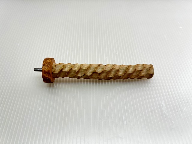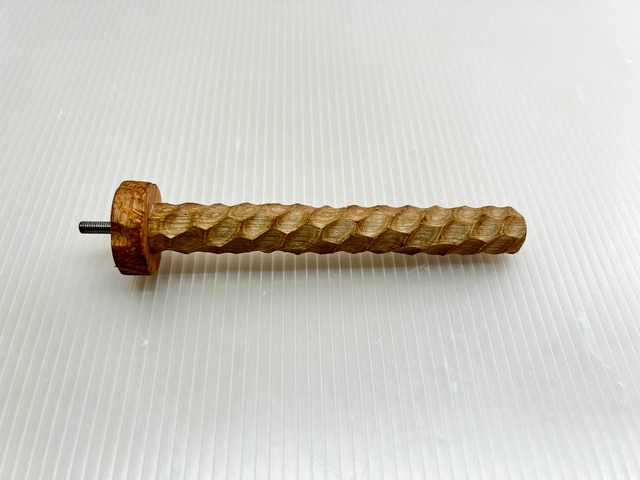 堅い樫を滑り止め効果を高めるため木肌をえぐるように多面彫り加工した特殊なパーチです。 グリップの弱い子、バンブルフットの緩和や予防にも最適な一本です。 【適応鳥種】 小型〜中型さん 【本体サイズ】 W150mm×Φ19-23mm 【素材】 熊本県産樫、北米産オーク、ステンレスボルト 【納期】 決済後3日以内に発送 【仕様】 ・天然木無垢材を使用しておりますので色ムラ、傷、欠け、割れ、節、折れ、曲がり等があります。 ・材料は乾燥後洗浄、煮沸、動物病院でも使用されるソリューションウォーター(次亜塩素酸)にて消毒済みです。 ・止まり木は自然の風合いを活かした無塗装仕上げ、愛鳥さんが樹皮をかじっても安全です。 ・愛鳥さんの個体差により適応鳥種から外れる場合もございます。ご購入前にご相談ください。 ・仕様は予告なく変更になる場合があります。 【ご使用前に】 お届けした止まり木には木肌保護のため国産天然素材由来の蜜蝋ワックスを薄く塗布してございます。鳥さんの口に入っても問題ございませんが、使用前に水で濡らし硬く絞った布等で軽く拭き取ってからご使用ください。 すぐに使わない止まり木は蜜蝋ワックスを拭き取らず保管いただくことをお勧めいたします。長期間の保存でも樹皮のひび割れや乾燥劣化を防ぐ効果があります。 【お手入れ】 ・軽い汚れは水で濡らして固く絞った布等で拭き取りしてください。 ・漂白剤や強い洗剤は有毒成分が残る場合がありますのでご使用にならないでください。 【ご使用上の注意】 本製品は、小鳥がかじる行為や部品の誤飲等により思わぬ事故または傷害が発生するおそれがあります。必ず飼主様の監督のもとでご使用ください。また安全のため破損や劣化が見られた場合は直ちに使用を中止してください。 【免責事項】 本製品の使用はすべて飼主様の自己責任において行っていただきます。初期不良を除き、破損・誤飲・事故等に起因するいかなる損害に対しても当店は一切の責任を負いません。あらかじめご了承のうえご購入ください。