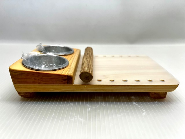 使い慣れたルーミィを療養や看護、老鳥さんなどに最適化するセットです。 可動テーブルはココットとステンレス薄皿をセットできる特注仕様。 大量生産品にはない品質と唯一無二の造形は愛鳥だけでなく人の心も豊かにしてくれるでしょう。 【適応鳥種】 アキクサインコさん 【本体サイズ】 □療養ルーミィ ・有孔スノコ:1 ・有孔可動仕切り壁:1 ・高さ傾き可変テーブル(デザパ、穂挿し、薄皿):1 ・ケーブルストッパー:1 ・交換天井キャップ:1 ・ショートデザパ:W150mm×Φ15mm前後 ・ppシート:1 ・465デザパ:W443mm×Φ15mm前後 ・ウッドナットlite:10 ・交換用ステンレス薄皿:4 【素材】 熊本県産樫、熊本県産桧、国産楢、アカシア材、ステンレスボルト、ステンレスL金具、鬼目ナット 【納期】 決済後3日以内に発送 【仕様】 ・天然木無垢材を使用しておりますので色ムラ、傷、欠け、割れ、節、折れ、曲がり等があります。 ・材料は乾燥後洗浄、煮沸、動物病院でも使用されるソリューションウォーター(次亜塩素酸)にて消毒済みです。 ・止まり木は自然の風合いを活かした無塗装仕上げ、愛鳥さんが樹皮をかじっても安全です。 ・愛鳥さんの個体差により適応鳥種から外れる場合もございます。ご購入前にご相談ください。 ・仕様は予告なく変更になる場合があります。 【ご使用前に】 お届けした止まり木には木肌保護のため国産天然素材由来の蜜蝋ワックスを薄く塗布してございます。鳥さんの口に入っても問題ございませんが、使用前に水で濡らし硬く絞った布等で軽く拭き取ってからご使用ください。 すぐに使わない止まり木は蜜蝋ワックスを拭き取らず保管いただくことをお勧めいたします。長期間の保存でも樹皮のひび割れや乾燥劣化を防ぐ効果があります。 【お手入れ】 ・軽い汚れは水で濡らして固く絞った布等で拭き取りしてください。 ・漂白剤や強い洗剤は有毒成分が残る場合がありますのでご使用にならないでください。 【オーダー料】 商品価格の5%をオーダー料として含みます。