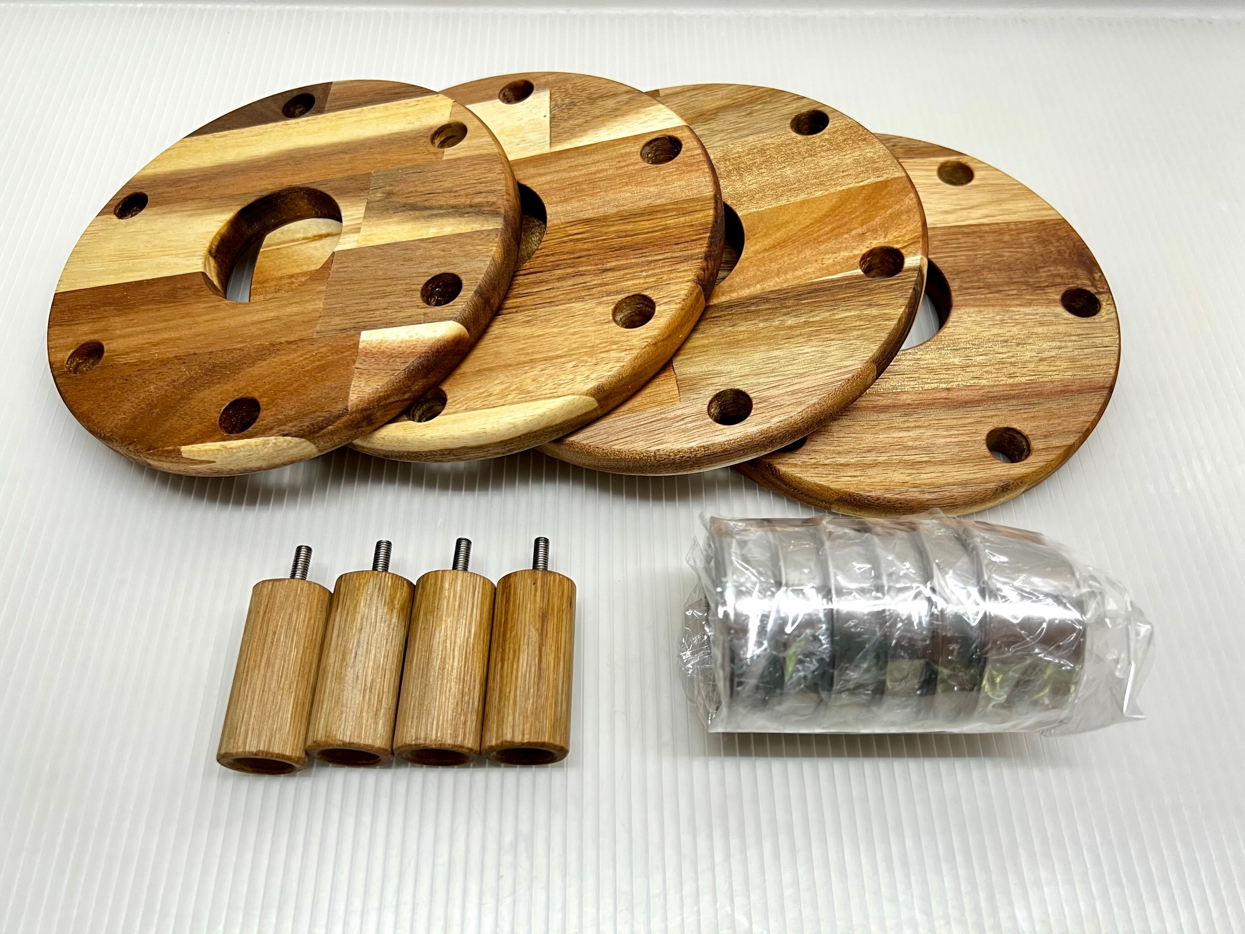 熊本県産樫、ステンレスボルト、アカシア、ステンレスカップ