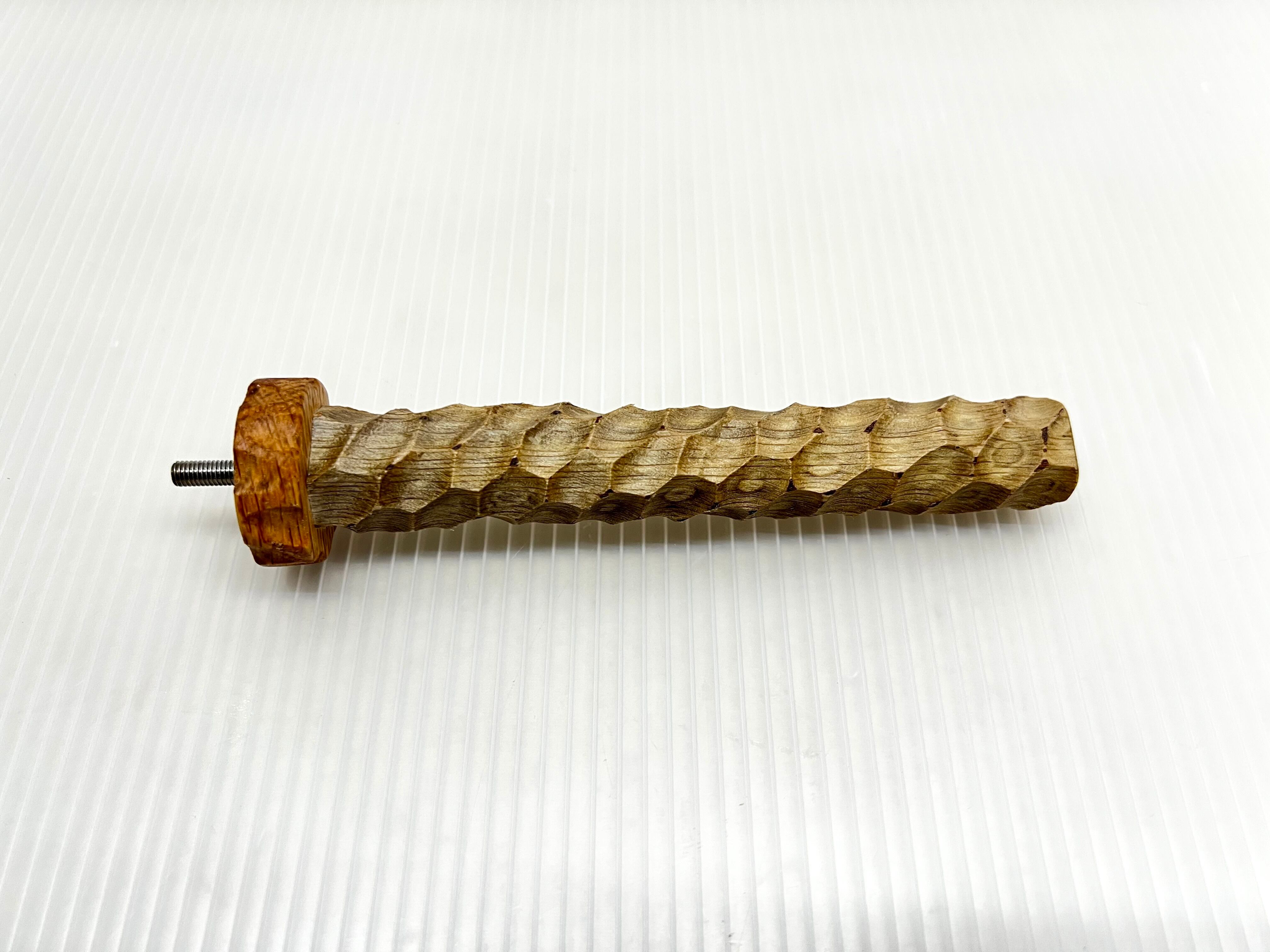 堅い樫を滑り止め効果を高めるため木肌をえぐるように多面彫り加工した特殊なパーチです。