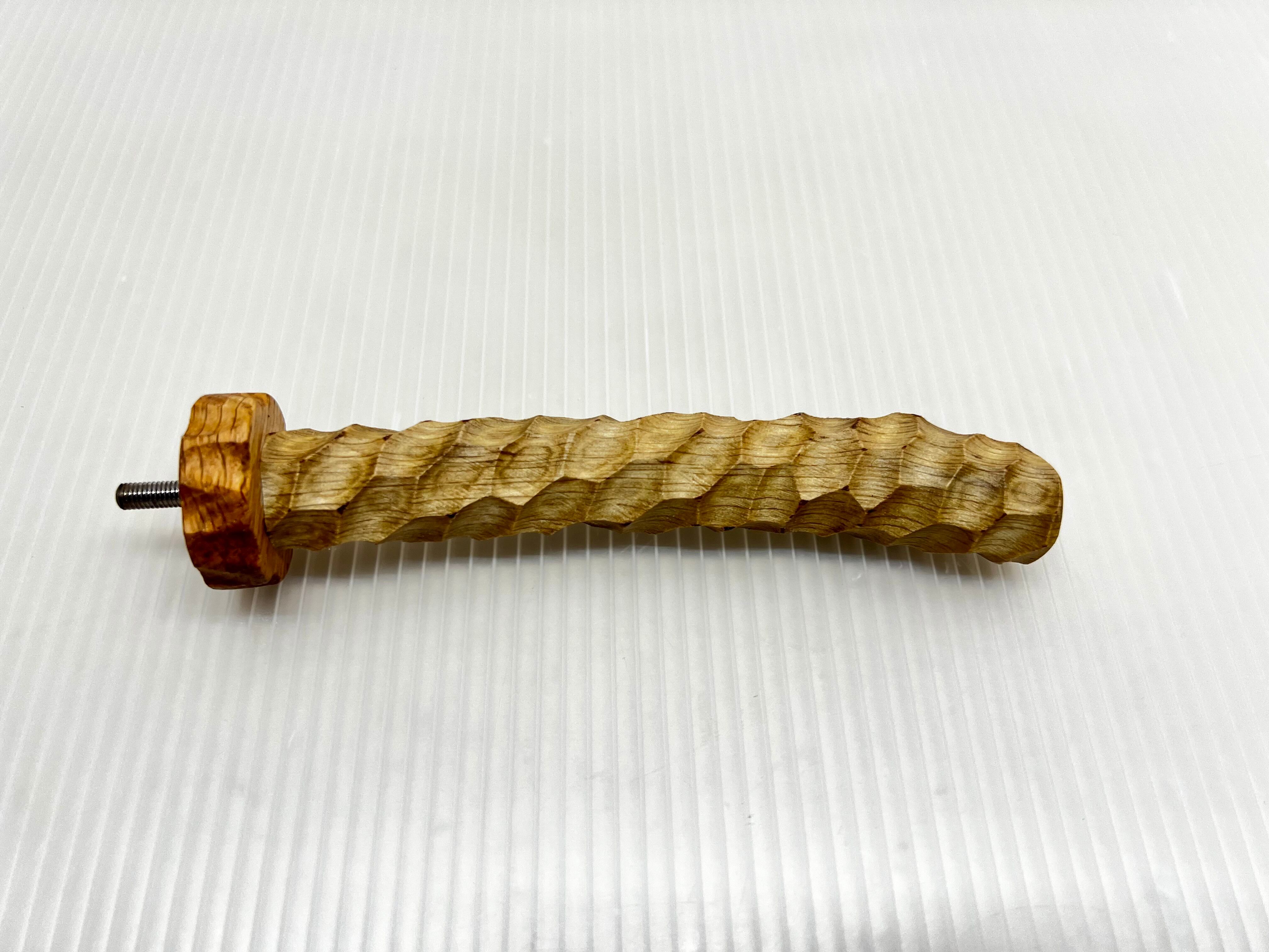 堅い樫を滑り止め効果を高めるため木肌をえぐるように多面彫り加工した特殊なパーチです。