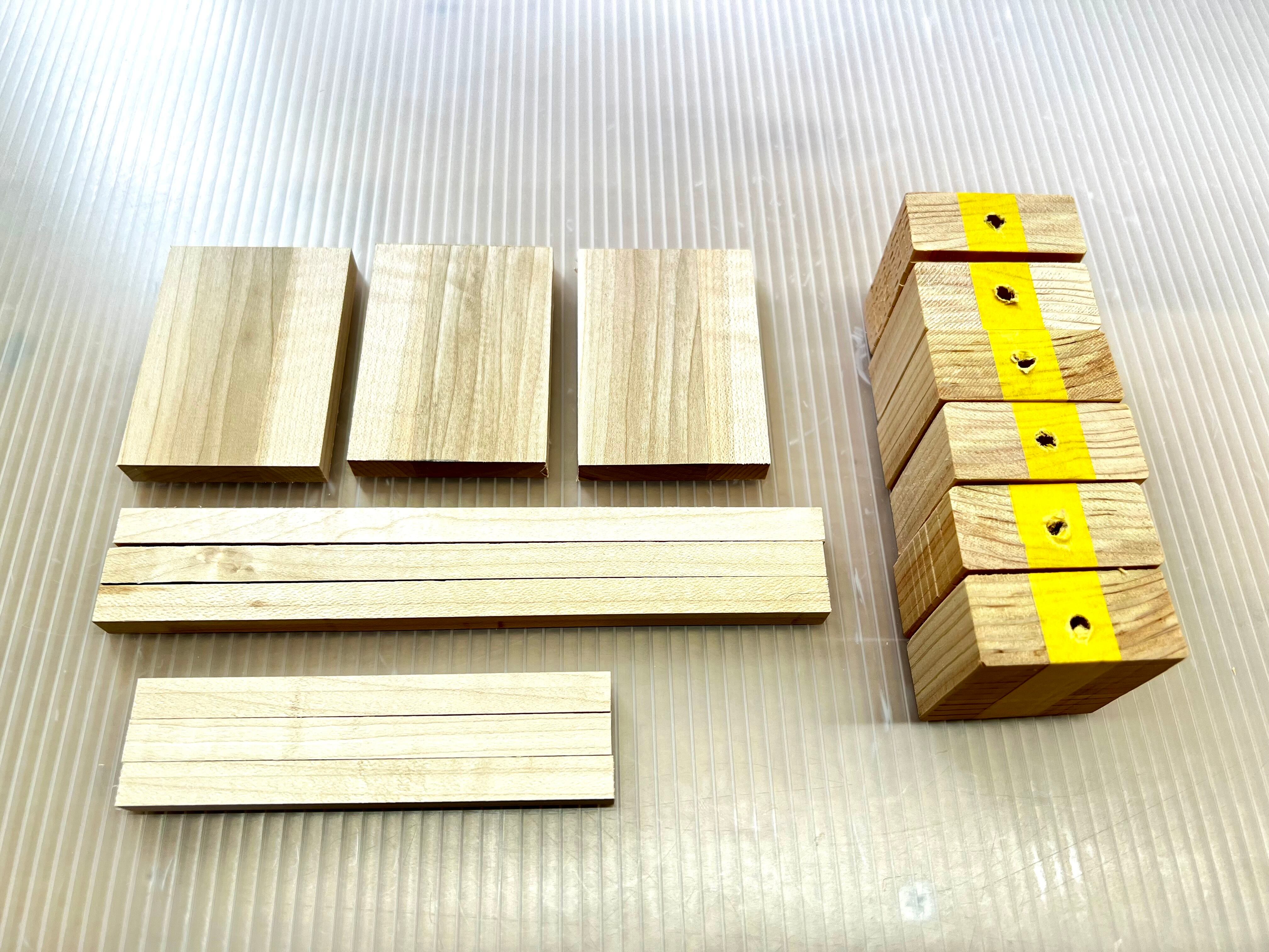 熊本県産のヒノキハーフスライスとメープル加工材。
