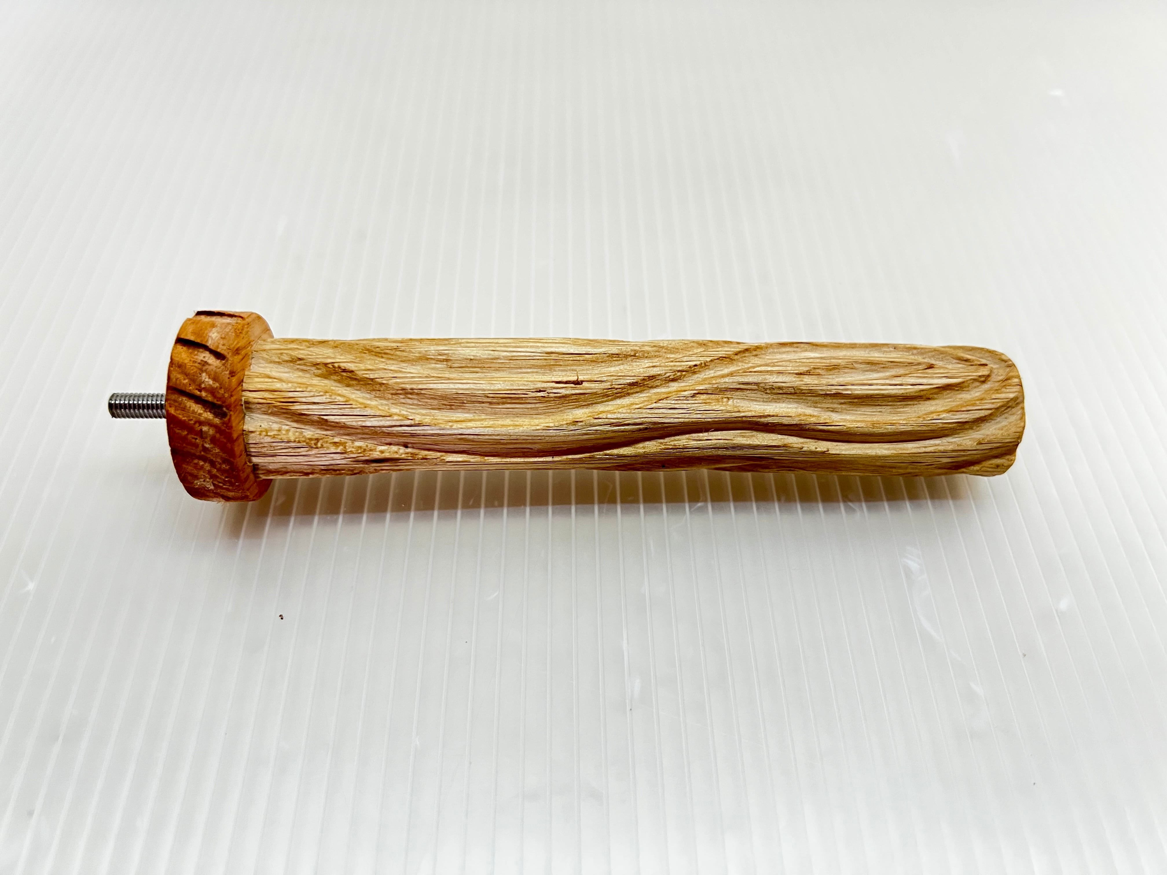 堅い樫を滑り止め効果を高めるため木肌をえぐるように波紋状彫り加工した特殊なパーチです。