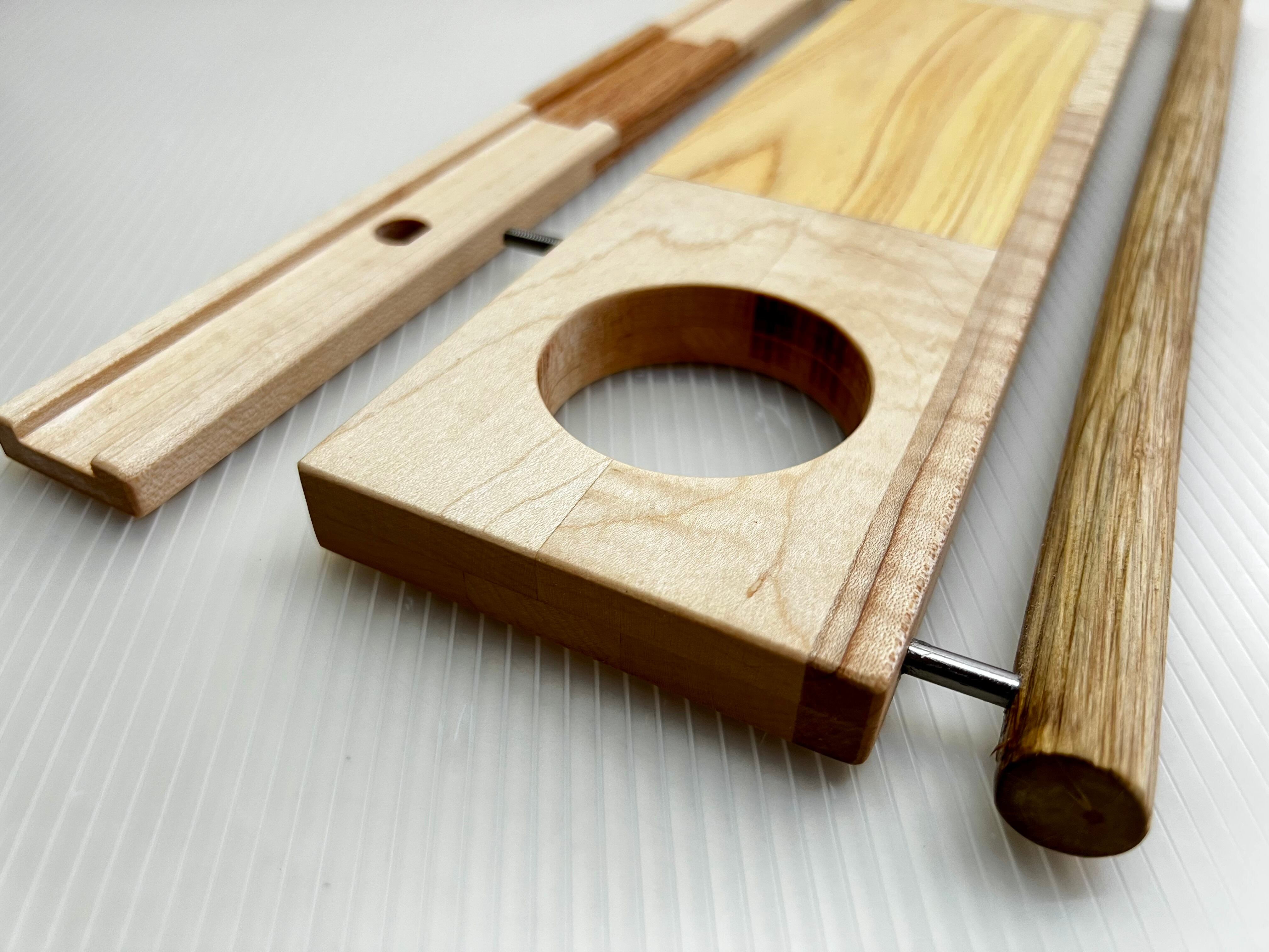 全体の歪み取り、背板交換、カップ部分を切り落としメープル材へ交換、穂挿し追加、縁に補強を施しました。