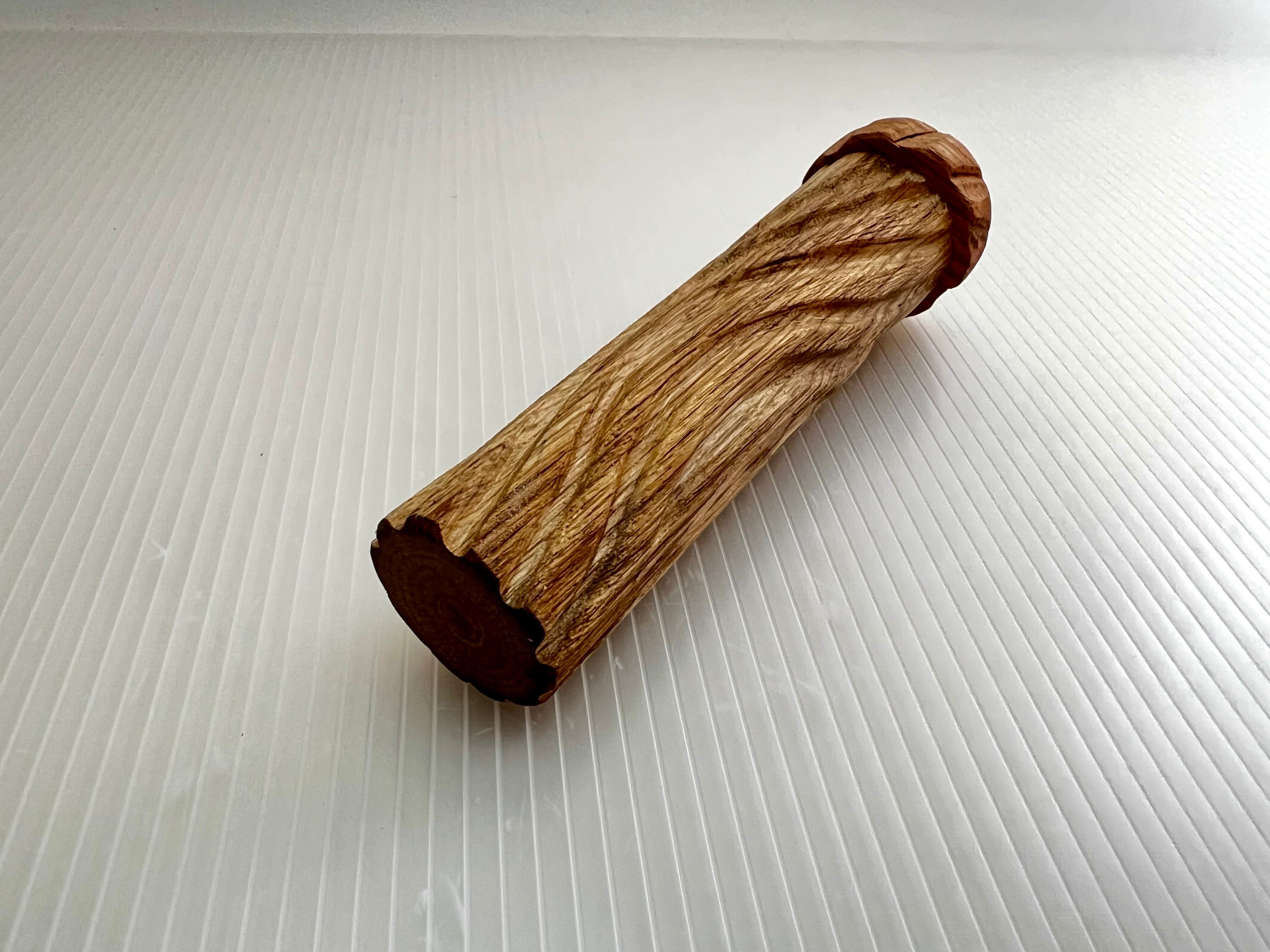 堅い樫の木肌をえぐるように波紋状に彫り加工した特殊なパーチです。
