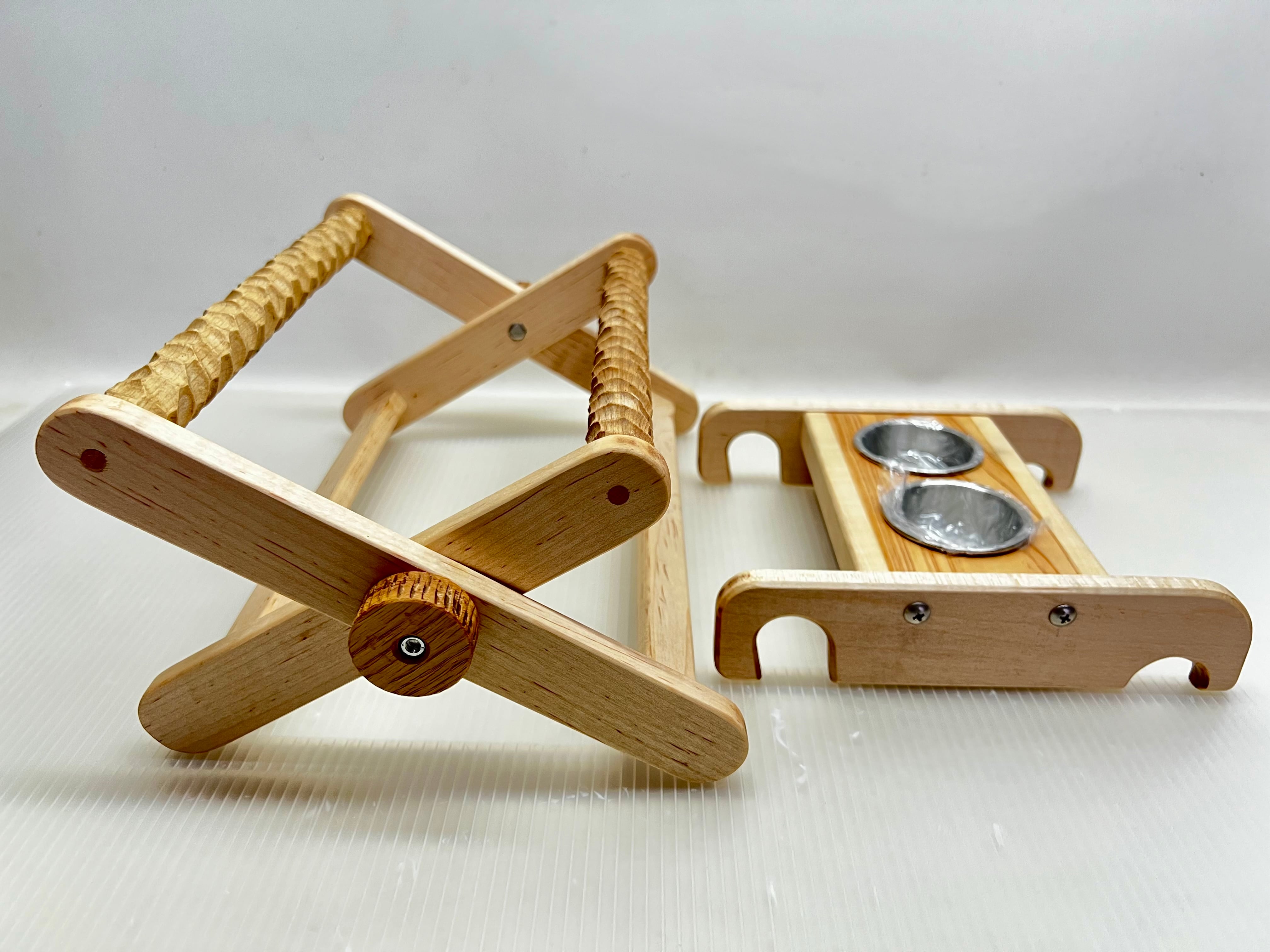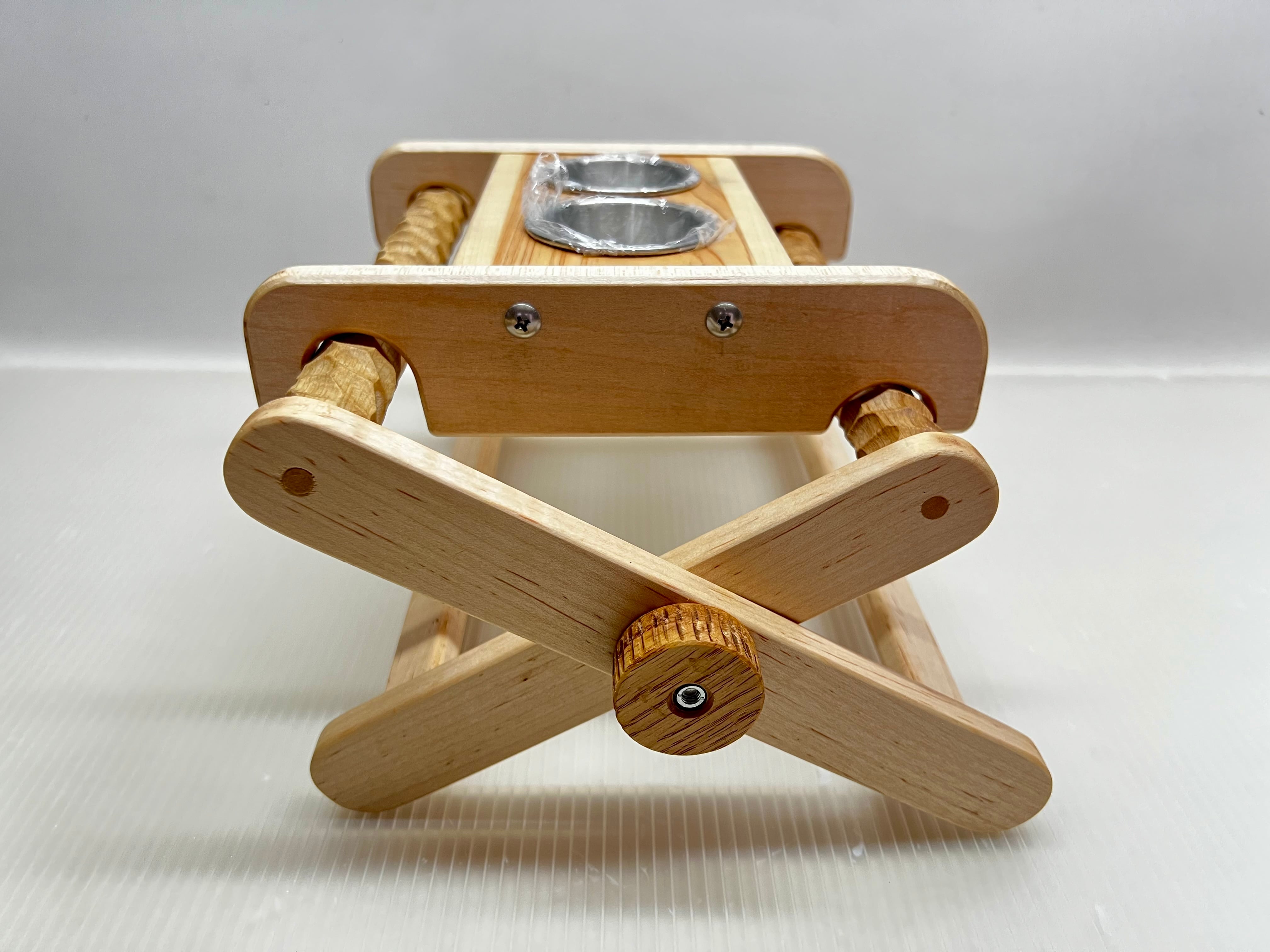グリップの良いデザパを段違いに配置した折りたたみ式の特別なスタンド。