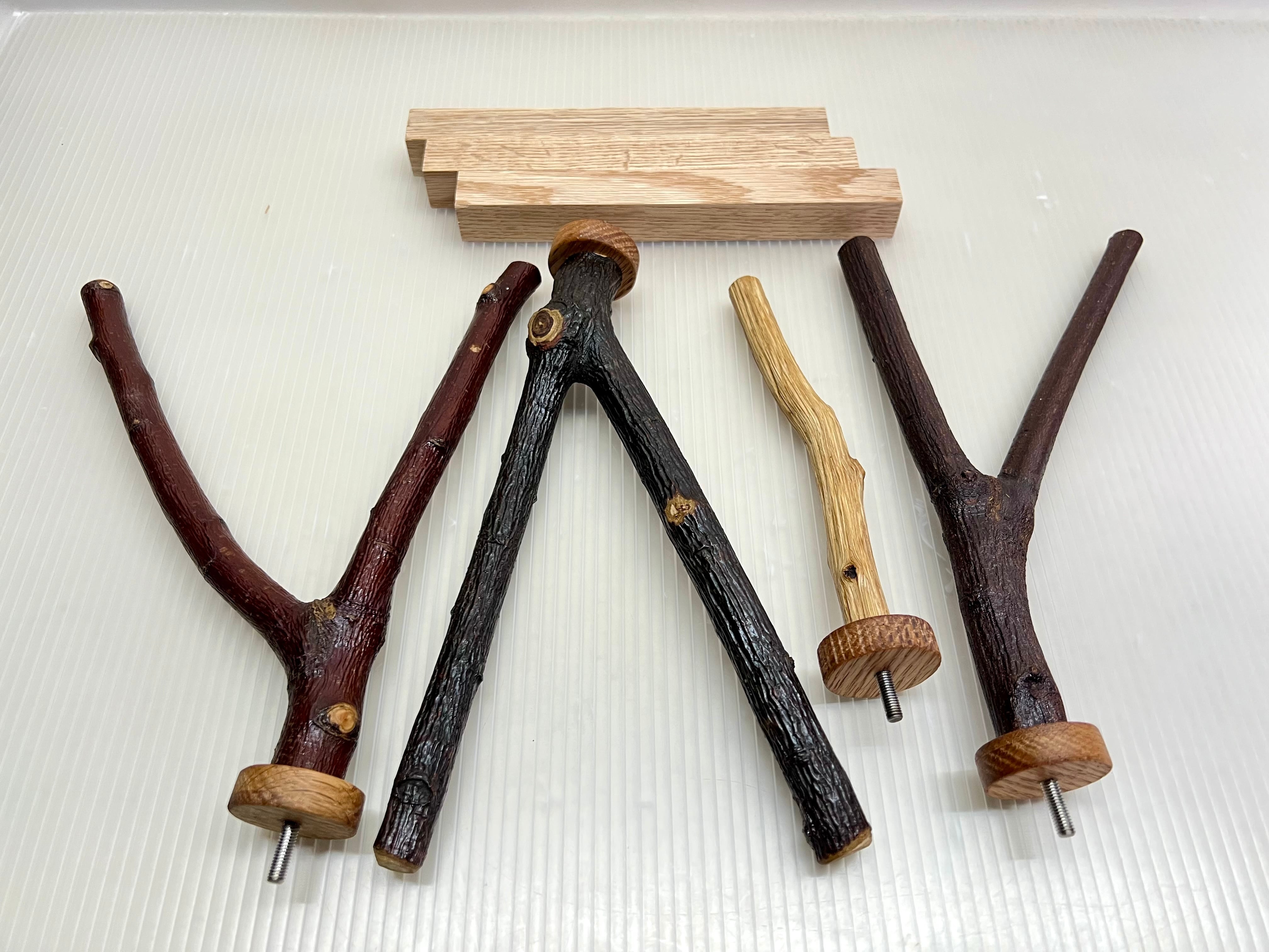 ・止まり木は自然の風合いを活かした無塗装仕上げ、愛鳥さんが樹皮をかじっても安全です。
