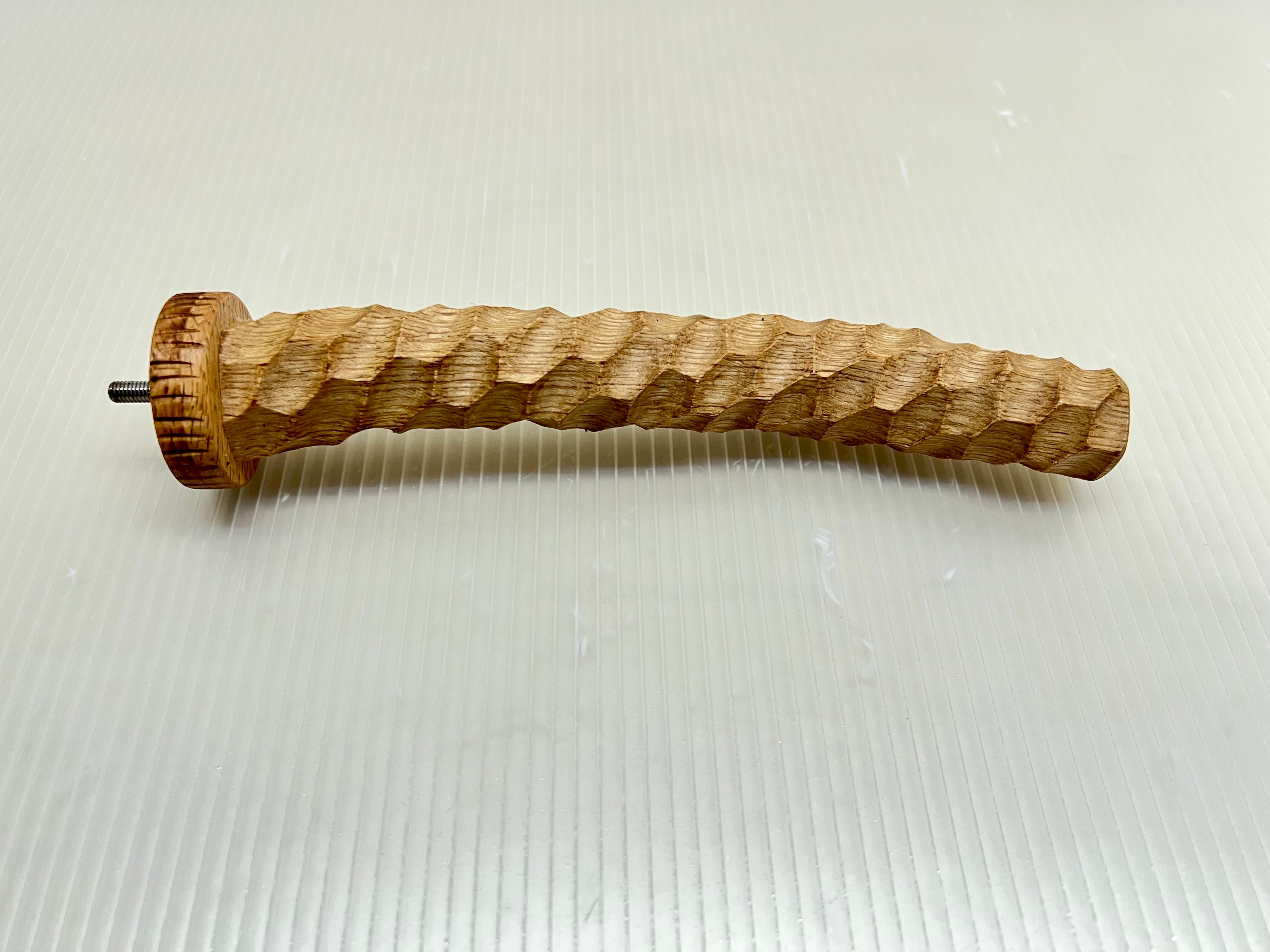 堅い樫を滑り止め効果を高めるため木肌をえぐるように多面彫り加工した特殊なパーチです。