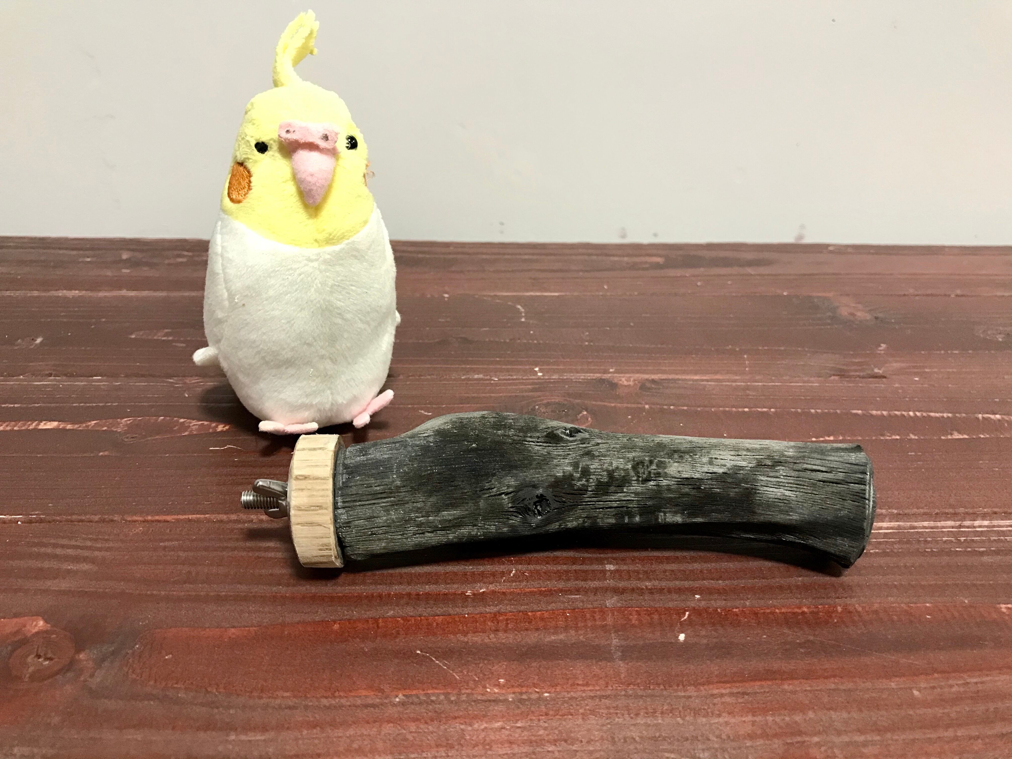 ・止まり木は自然の風合いを活かした無塗装仕上げ、愛鳥さんが樹皮をかじっても安全です。
