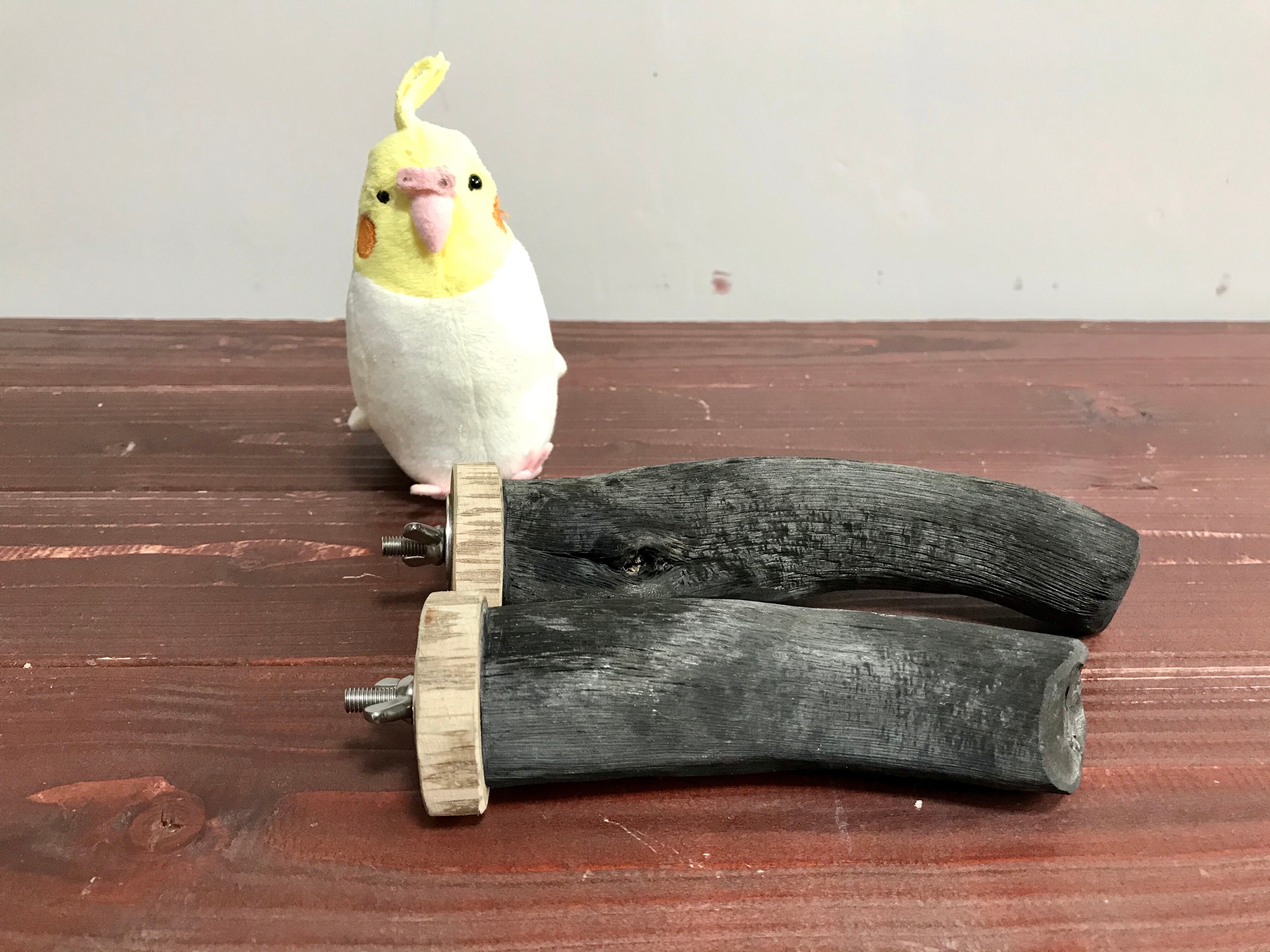・止まり木は自然の風合いを活かした無塗装仕上げ、愛鳥さんが樹皮をかじっても安全です。