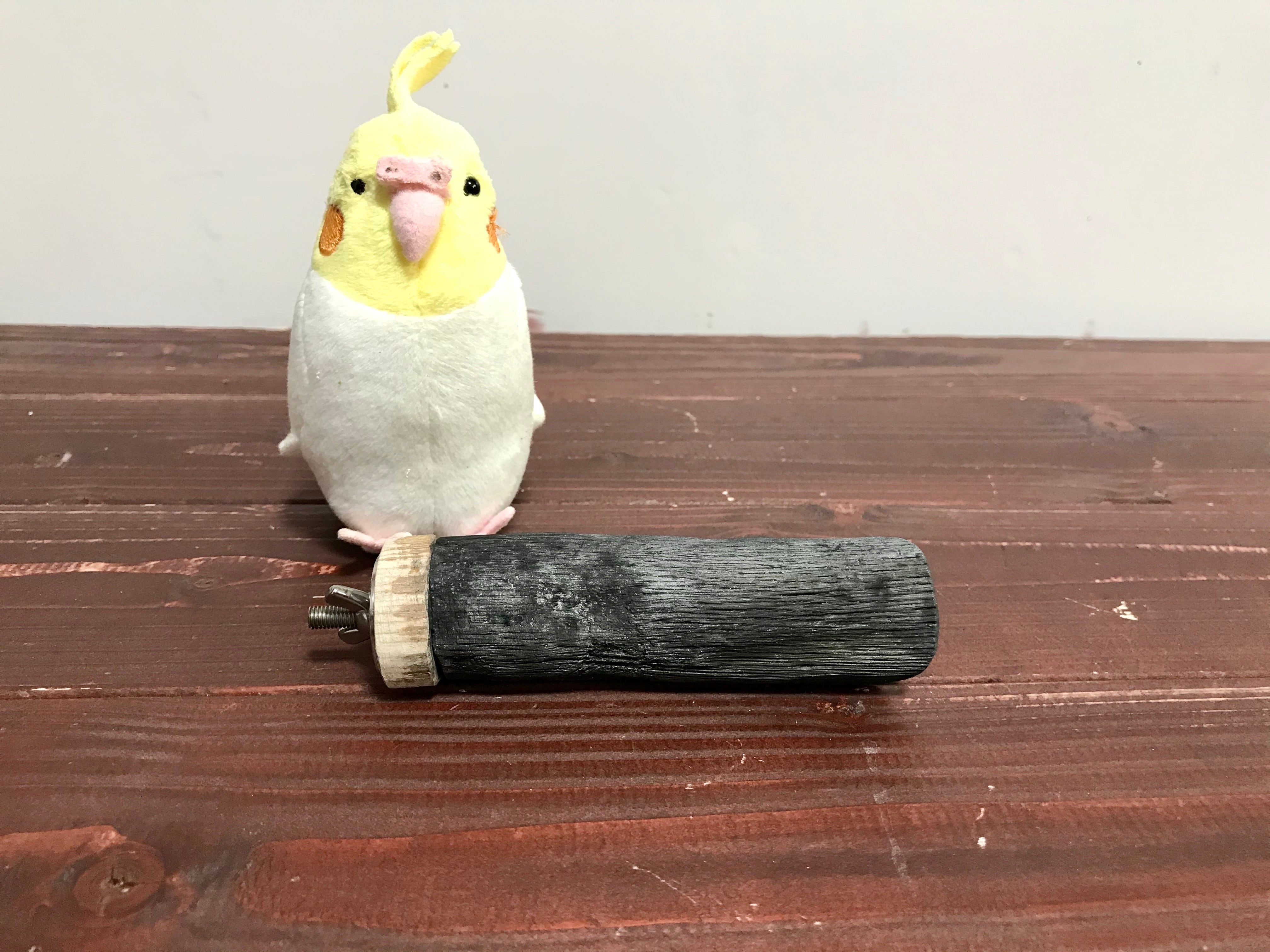 お届けした止まり木には木肌保護のため国産天然素材由来の蜜蝋ワックスを薄く塗布してございます。鳥さんの口に入っても問題ございませんが、使用前に水で濡らし硬く絞った布等で軽く拭き取ってからご使用ください。