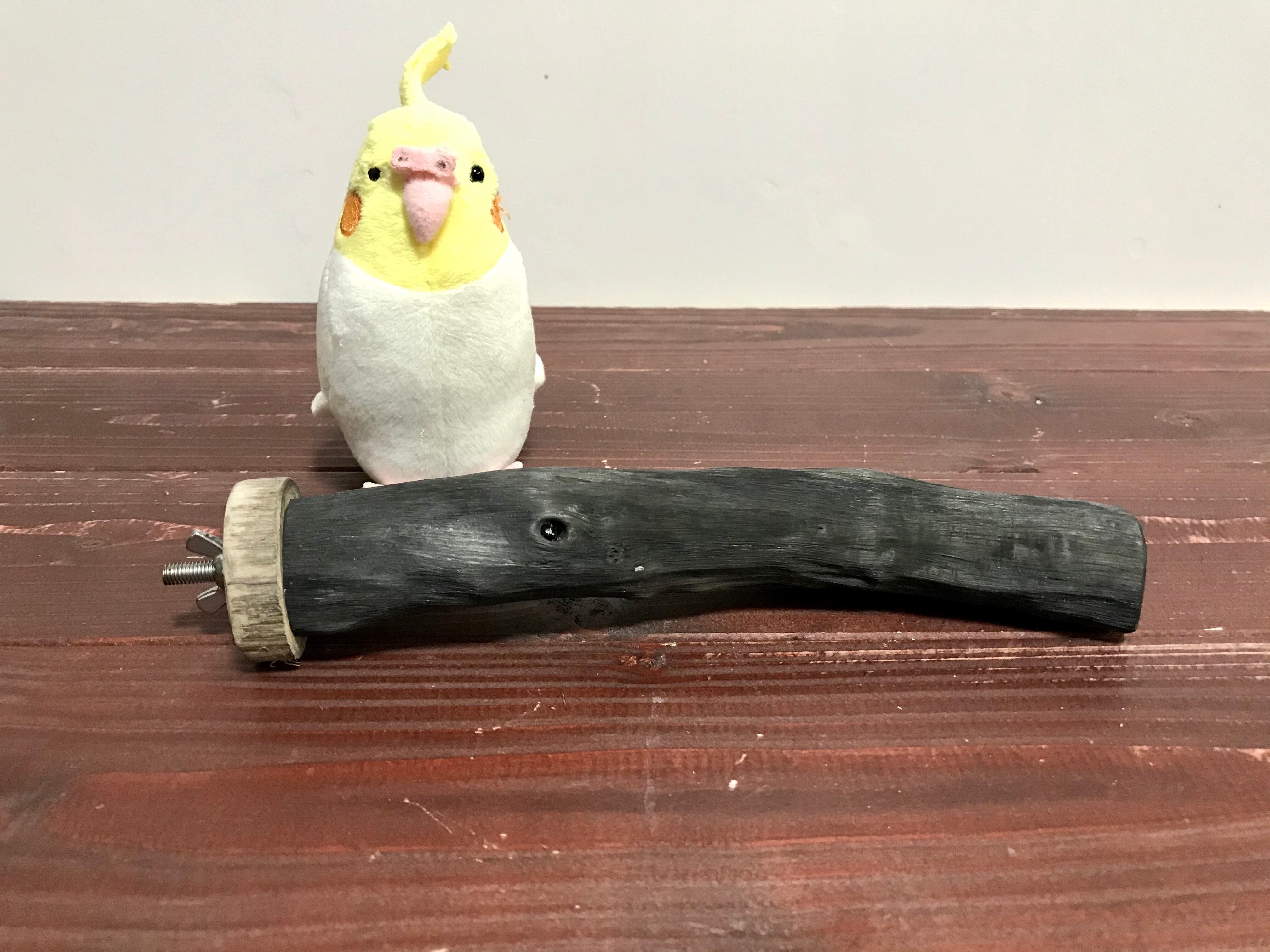 お届けした止まり木には木肌保護のため国産天然素材由来の蜜蝋ワックスを薄く塗布してございます。鳥さんの口に入っても問題ございませんが、使用前に水で濡らし硬く絞った布等で軽く拭き取ってからご使用ください。
