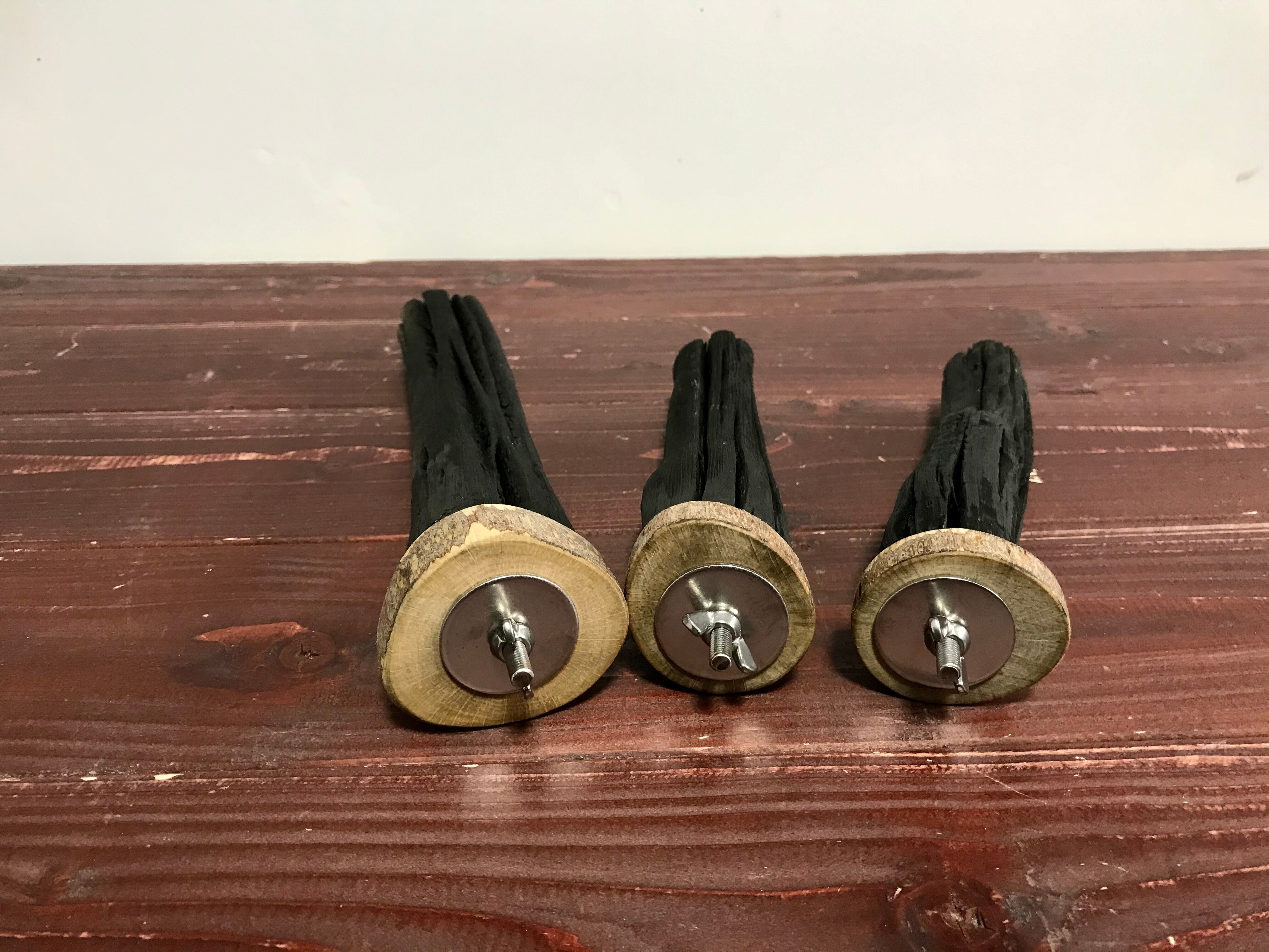 日本に自生する樹木の中で一番堅い樫。その樫を原料にした土佐備長炭をパーチに仕立てました。太さや木肌の変化に富んだ自然木の凸凹は鳥たちに適度な刺激を与え、爪の伸び過ぎを抑制したりリラックス効果も期待できます。