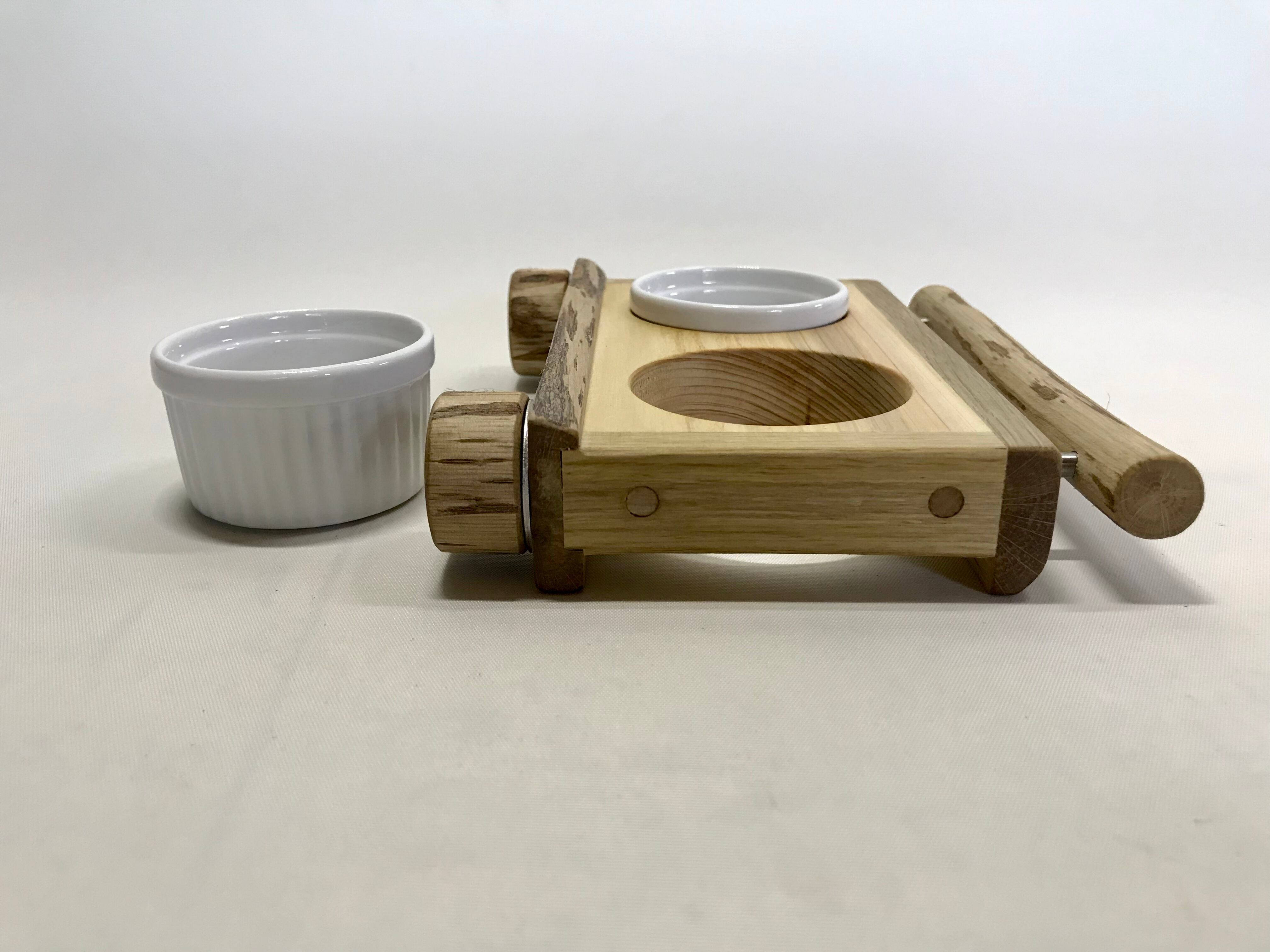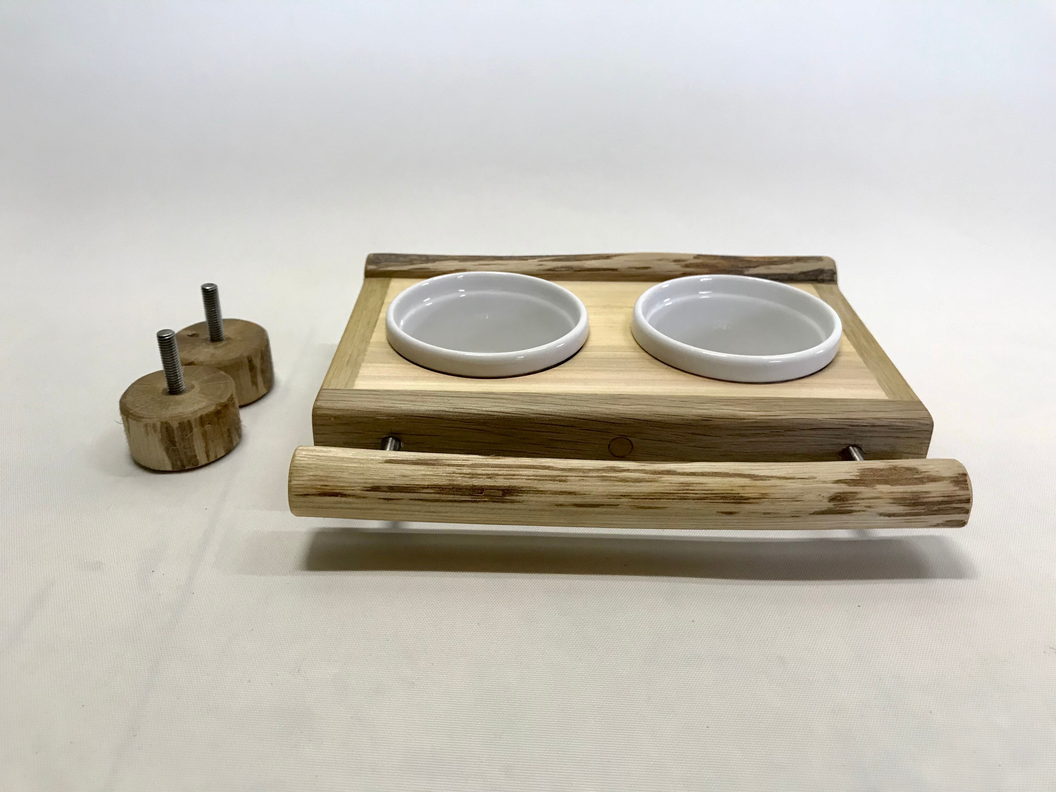 テーブルの縁をぐるりと硬い樫で囲み、かじることを物理的に難しくした特別なテーブルです。床置き(卓上)にもケージにも取り付け可能な二通りの設置方法で鳥さんの状態に合わせてご使用いただけます。