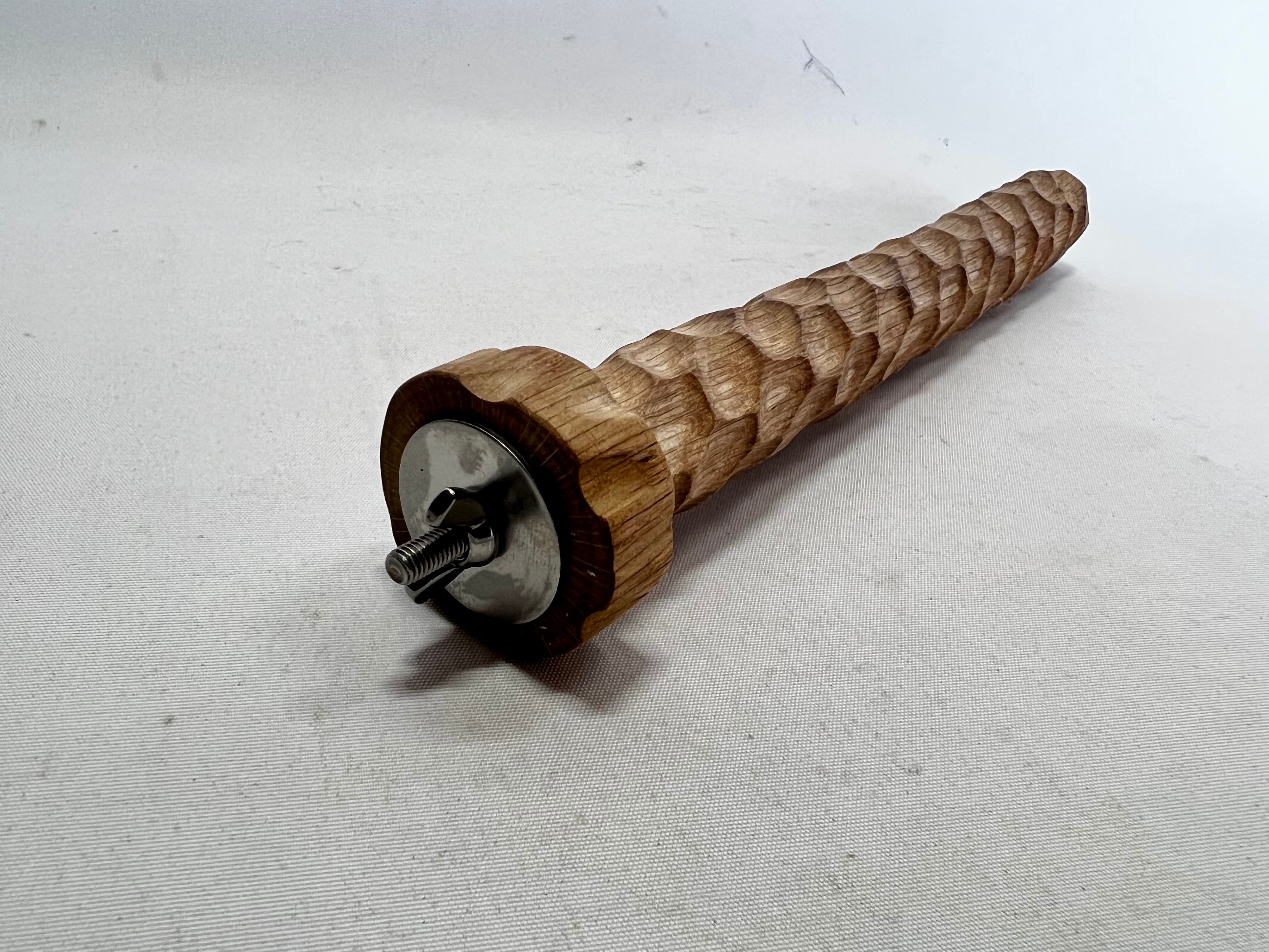 滑り止め効果を高めるため木肌をえぐるように多面彫りした特殊加工のパーチです。
