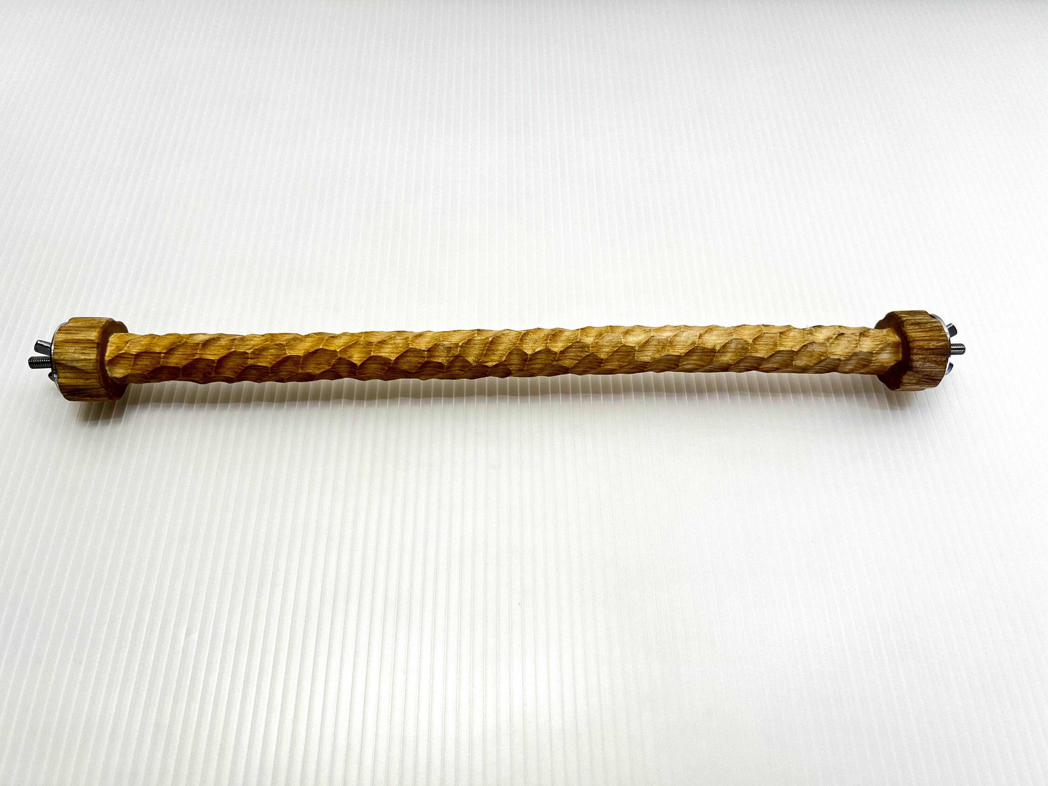 HOEI35ステンレスケージにフィットする、滑り止め効果を高めるため木肌をえぐるように多面彫りした特殊加工の両留パーチです。