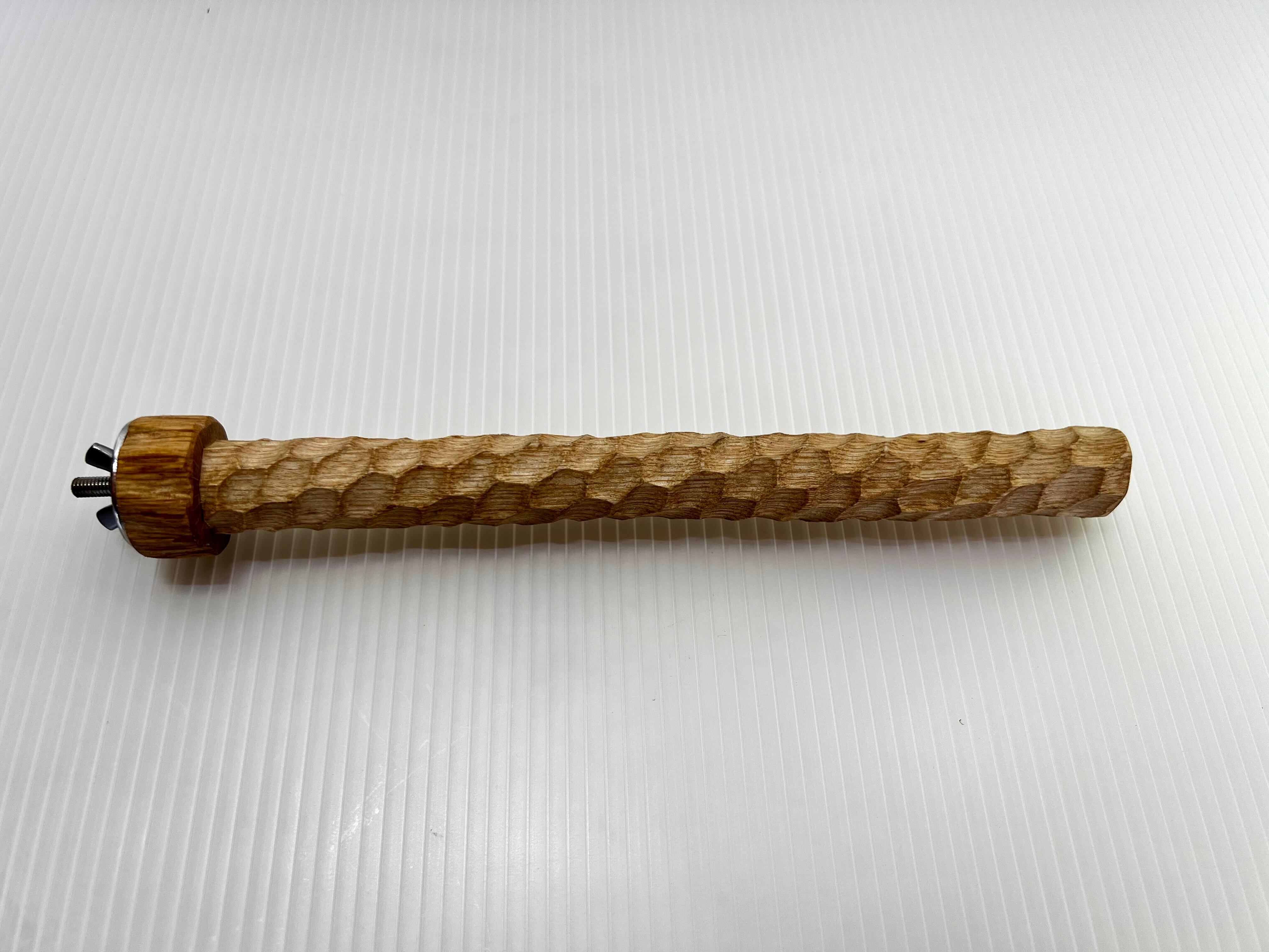 堅い樫を滑り止め効果を高めるため木肌をえぐるように多面彫り加工した特殊なパーチです。