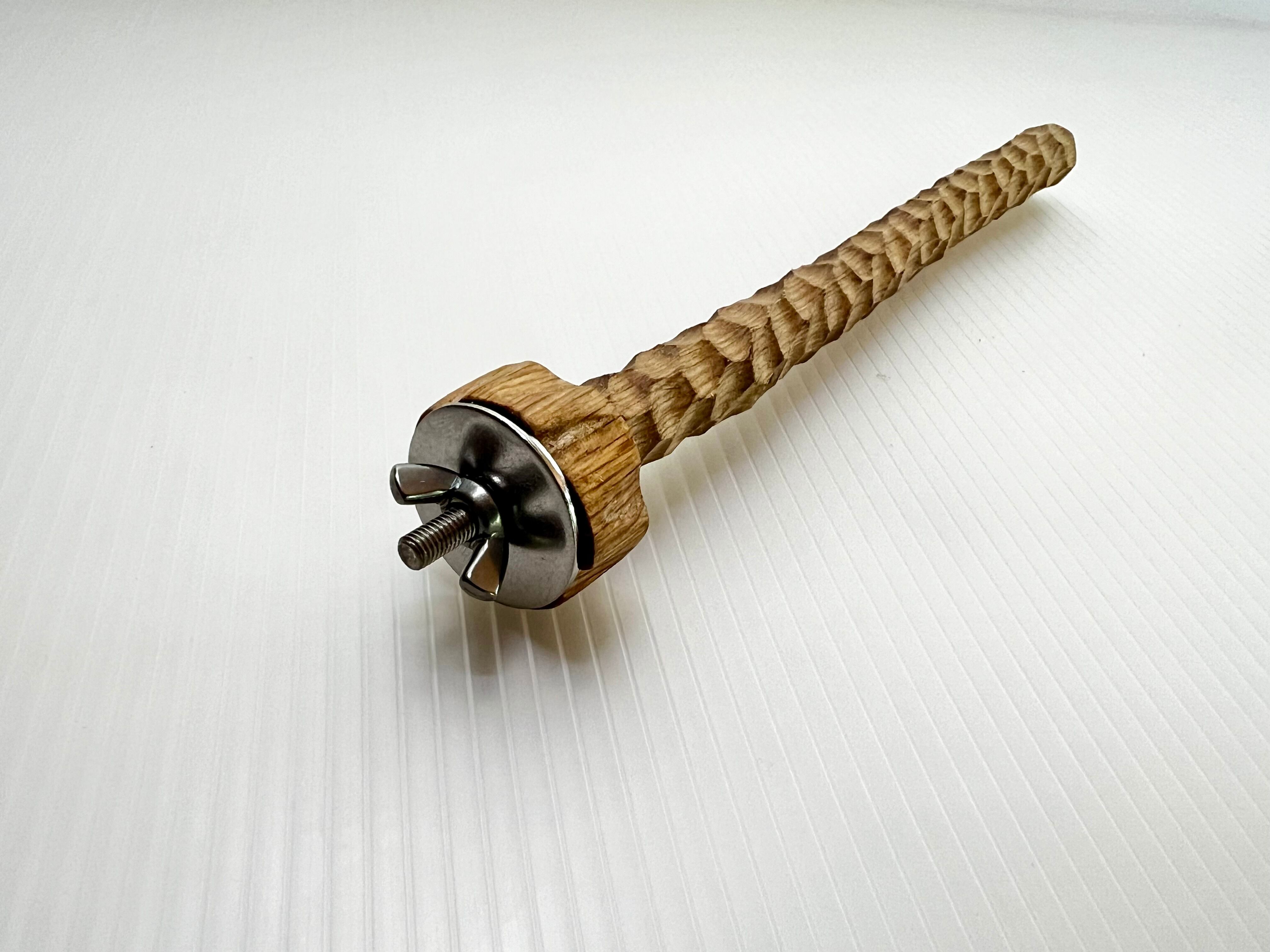 堅い樫を滑り止め効果を高めるため木肌をえぐるように多面彫り加工した特殊なパーチです。