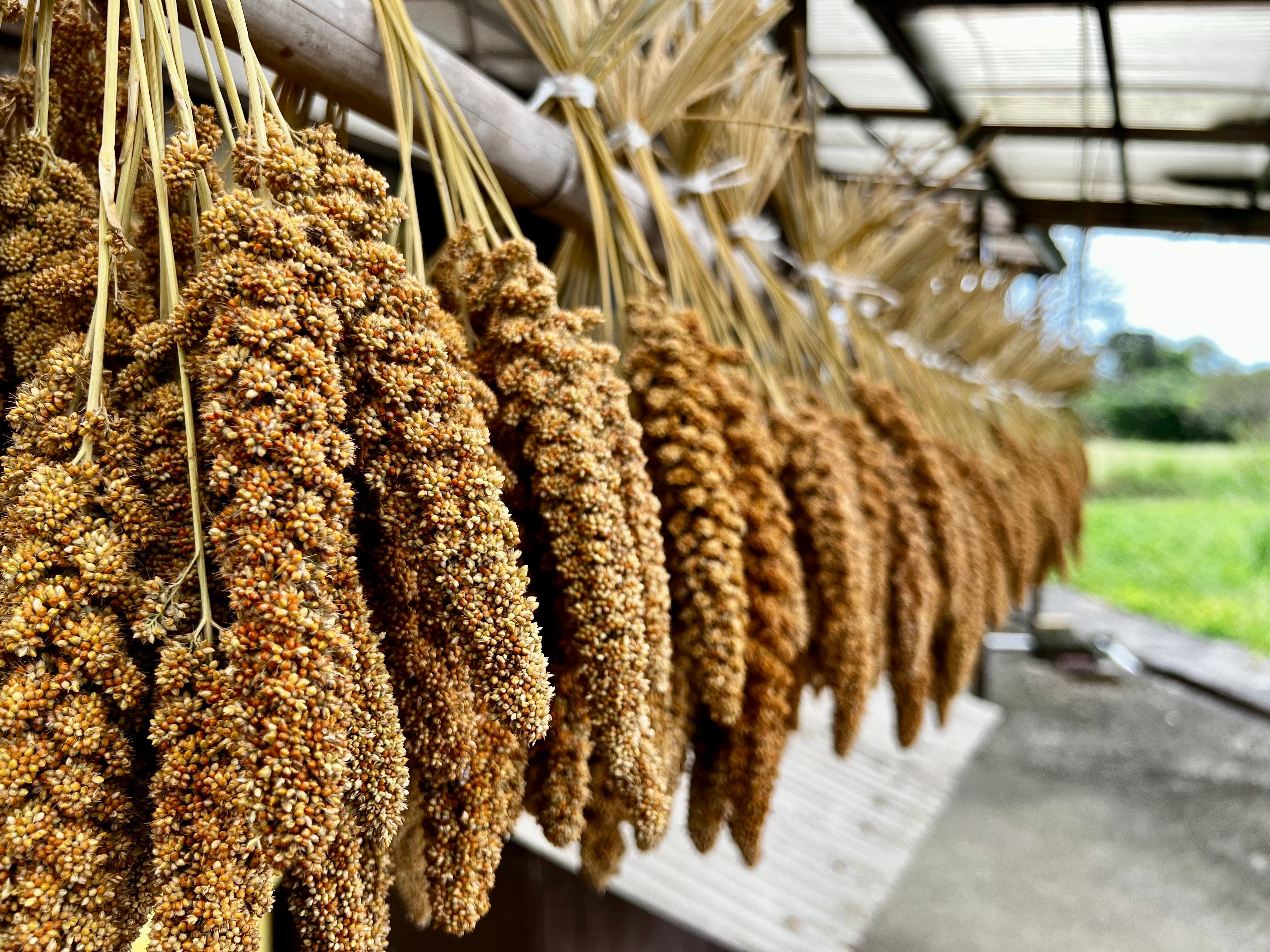 有機肥料だけを使用、昔ながらの天日干しで完成までじっくり6ヶ月かけた完熟赤粟穂です。