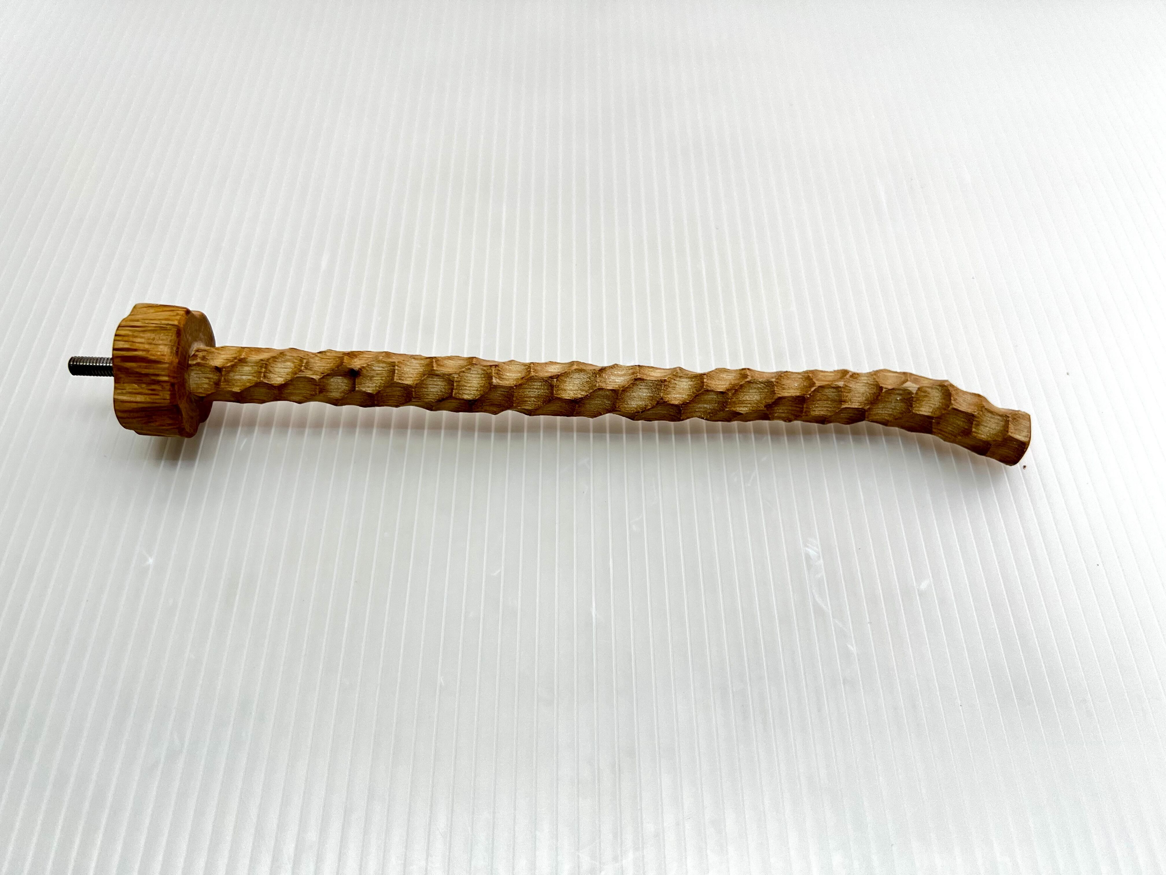 堅い樫を滑り止め効果を高めるため木肌をえぐるように多面彫り加工した特殊なパーチです。